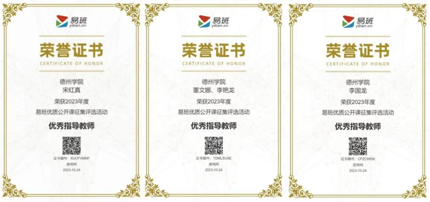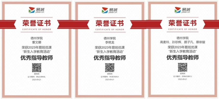 分别荣获2023年易班优课“学习二十大”教学课群比赛全国优秀组织奖、2023年易班优课“新生入学教育活动”全国优秀组织奖,我校公开课《夯实诚信之基 践行时代使命》荣获2023年度易班优质公开课优秀奖。
