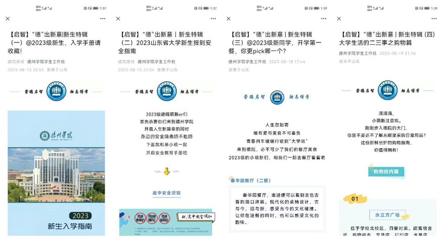 在学生工作处微信公众号推出“德”出新意 | 新生特辑”系列推文13篇、新生军训特辑系列推文10篇。