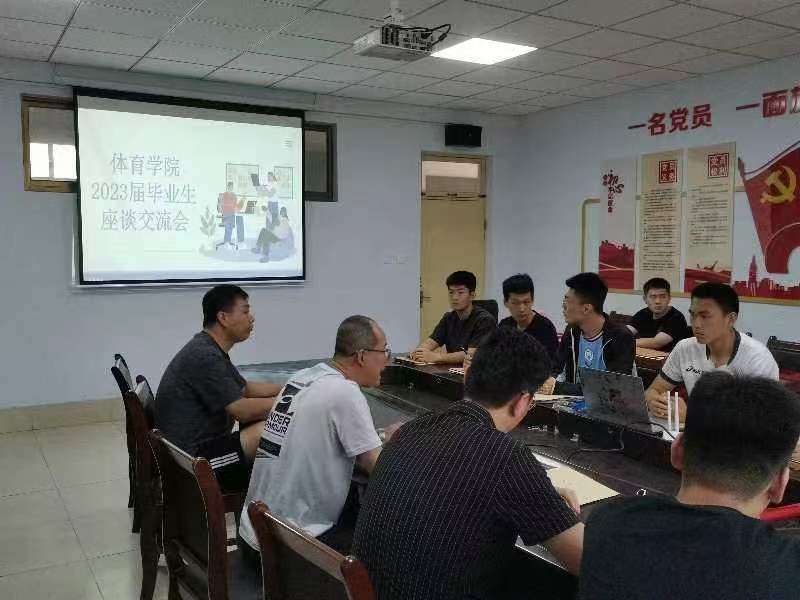 6月9日,体育学院于体育楼二楼会议室举行2023届毕业生座谈交流会,体育学院党委副书记刘毅、学工办主任薛文辉、2023届毕业生党员代表参加了此次座谈。