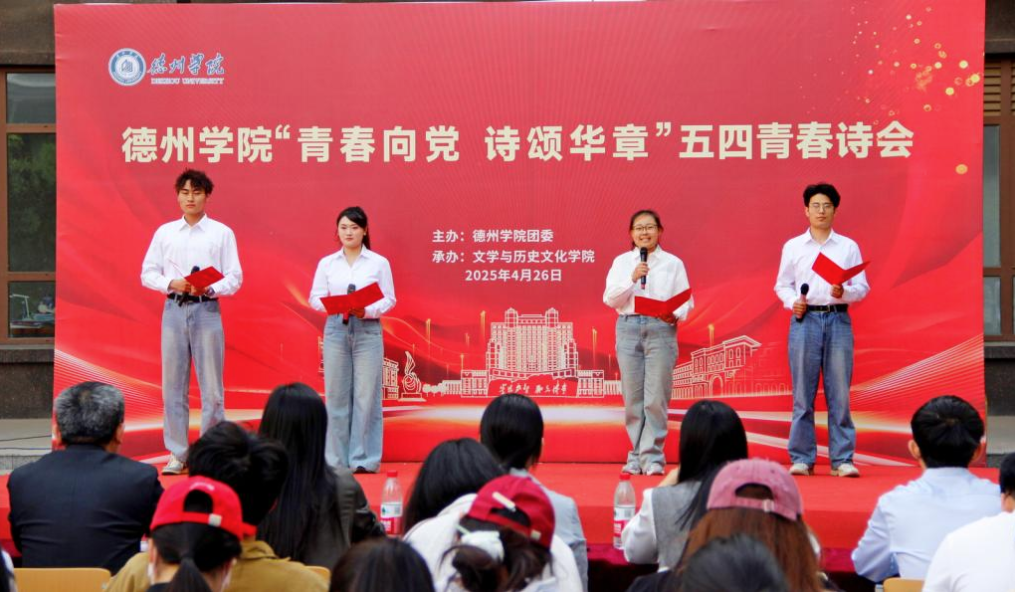 本次青春诗会不仅是一场高水准的诗歌艺术盛宴,更是一堂生动的思政教育实践课。青年学子通过真挚的情感表达和精湛的艺术呈现,深刻诠释了对党、对祖国、对青春的热爱与追求。今年学校“五四”系列活动以“青春挺膺担使命,砥砺奋进启新程”为主题,包含“铸魂育人”“文化传承”“青创未来”“就业引航”等板块12项重点活动,充分彰显德院青年赓续五四精神、勇担时代重任的坚定信念,激励广大青年为努力实现学校高质量发展和奋力开创高水平、有特色、国际化应用型大学建设新局面贡献青春力量,在民族复兴的伟大征程中书写更加绚丽的青春篇章。