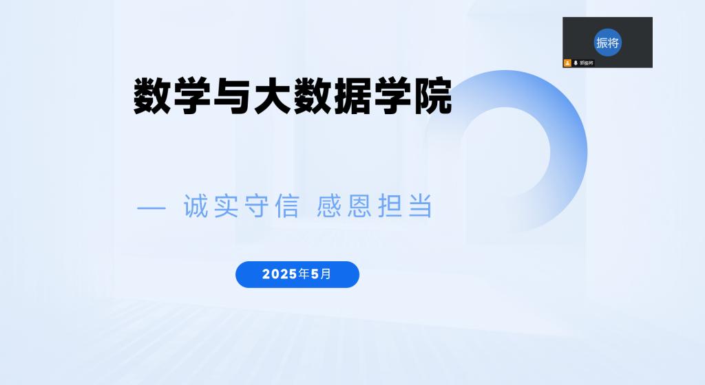 为切实做好毕业生思想政治教育工作,引导毕业生树立正确价值观念,强化诚实守信意识,培育感恩担当精神,数学与大数据学院于5月19日通过腾讯会议开展“诚实守信,感恩担当”主题班会。