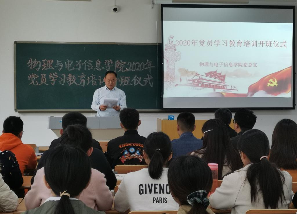 为进一步加强基层党组织建设,做好党员教育管理监督,切实发挥党建工作在高校教书育人中的引领作用,11月3日下午,物理与电子信息学院在明理楼0215教室召开党员集中培训动员部署会暨开班仪式,学院全体师生党员参加了活动。活动由学院党总支负责人主持。