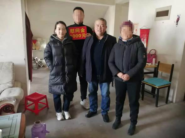 2021年1月13日8点30分,在美术学院党总支副书记戚良华的带领下,团总支书记董晓婷、辅导员杨辉一行三人,带着学校的关怀和米、面、油等慰问物资前往泰安市宁阳县,慰问2018级美术学专业贫困学生。受资助学生家住泰安市宁阳县,父亲去世,母亲患乳腺癌手术,术后进行了6次化疗治疗,医疗费用负担十分沉重,他和母亲相依为命,共渡难关。上午11点30分,老师们来到了学生家里,学生的母亲十分激动,“感谢老师们对孩子的关心,您们辛苦了。”
