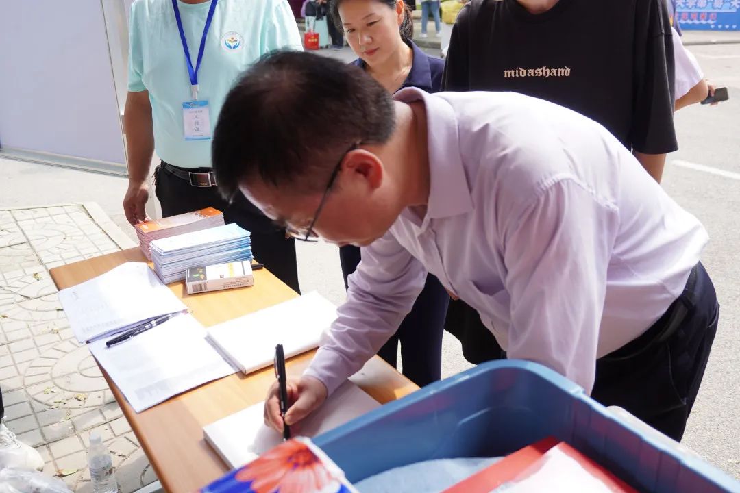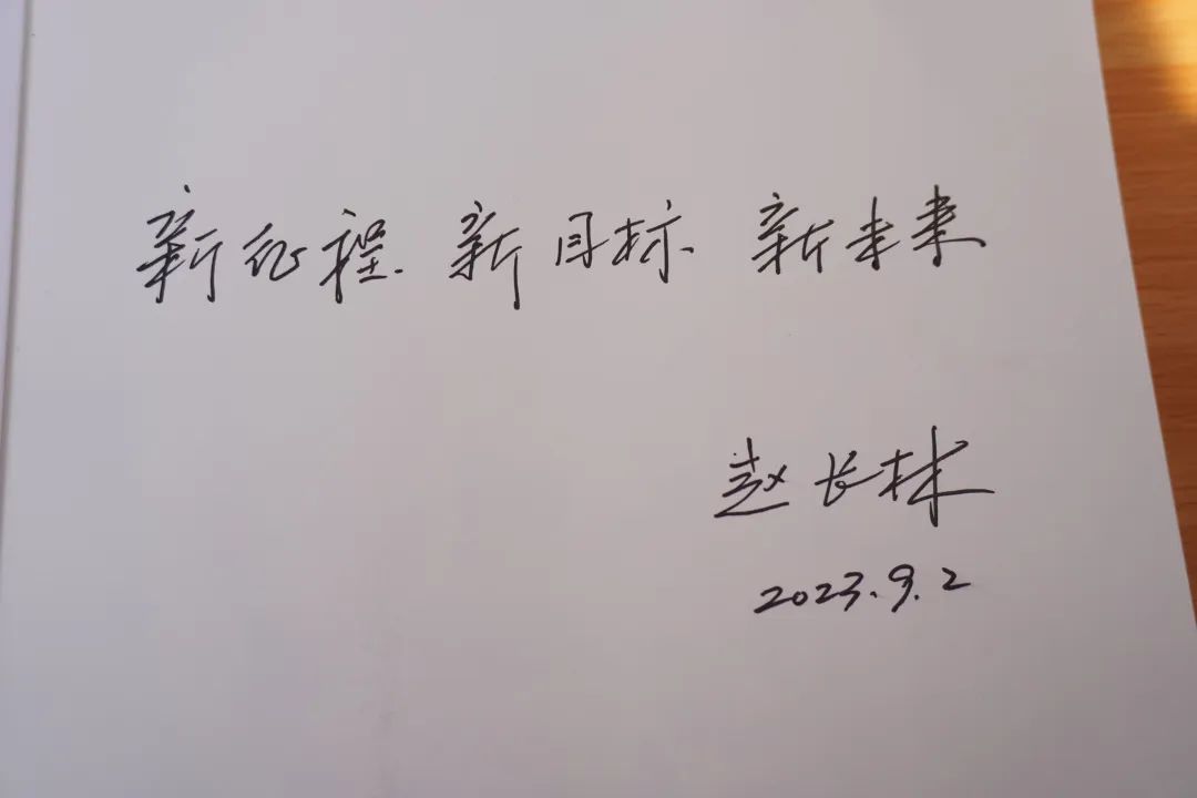 学校领导一行在绿色通道处驻足询问资助工作情况时,恰逢学生领取大礼包,赵长林校长与学生亲切交流,细细询问。受学子之邀,赵校长在爱心大礼包中的书籍首页题字留念:“新征程 新目标 新未来”。被题字学生也表达了自己的激动心情,表示一定会努人力学习,成为对社会有贡献的才。