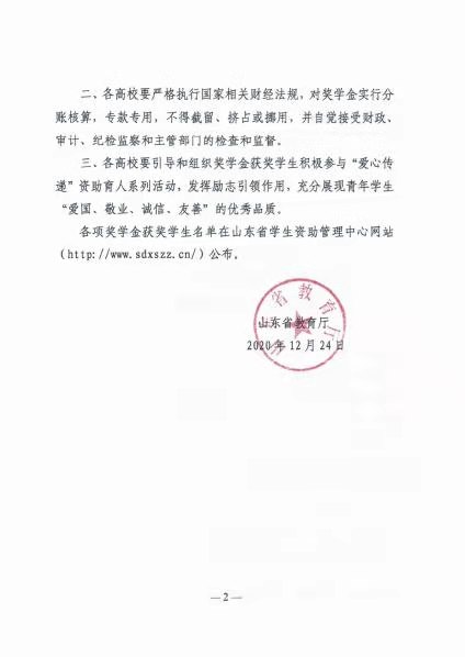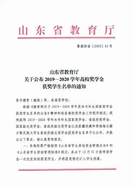 山东省教育厅关于公布2019-2020学年高校奖学金获奖学生名单的通知