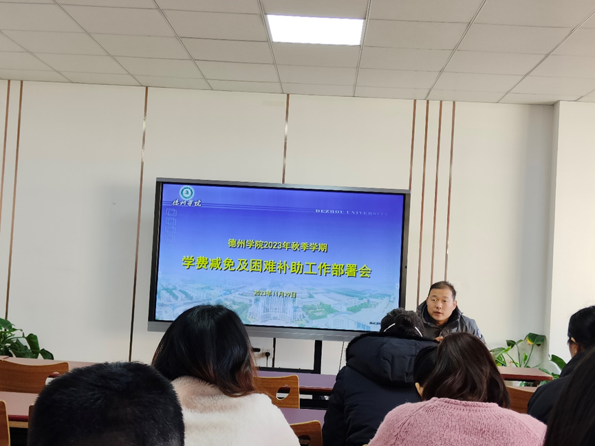 2023年11月29日,德州学院学生资助管理中心组织各二级学院相关负责老师开展了一次秋季学期学费减免及困难补助工作部署会。学生资助管理中心的负责人老师对学费减免及困难补助工作进行了重点部署,旨在要进一步帮助家庭经济困难学生更好的完成学业。会议主要围绕以下两个方面开展: