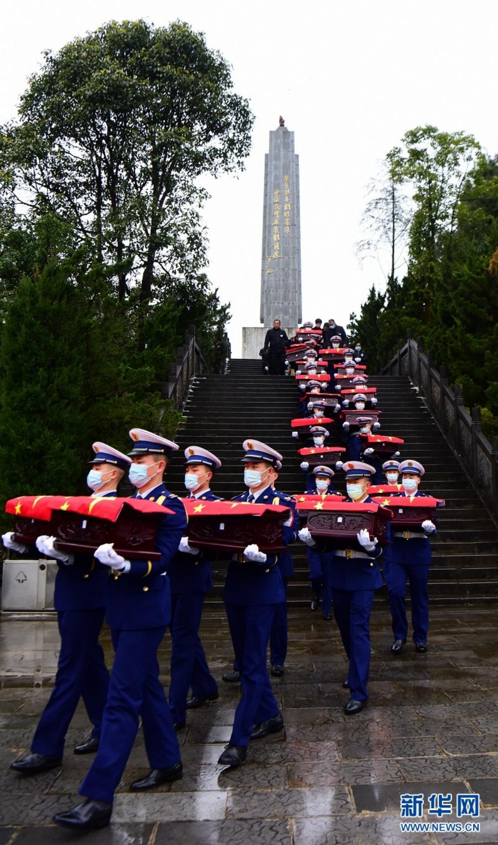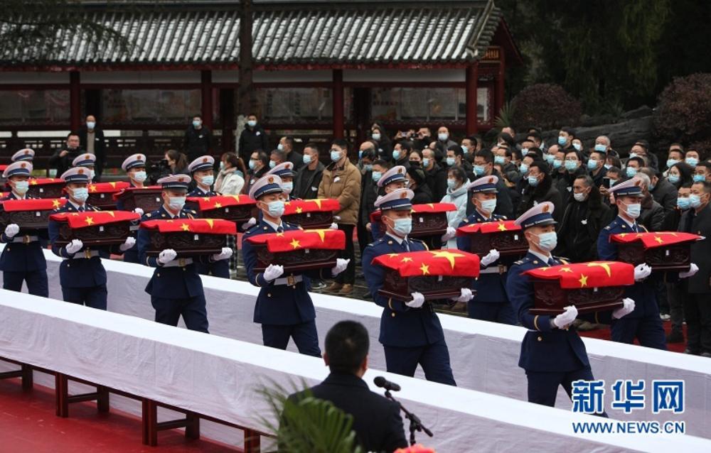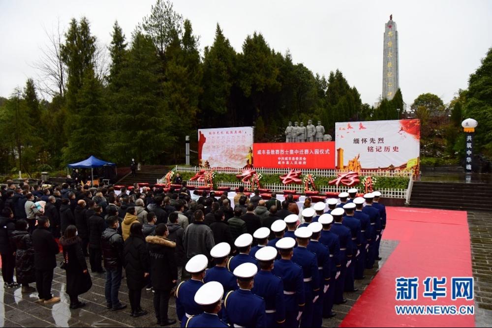 1月26日,湖北省咸丰县23名散葬烈士棺椁集中迁入县烈士陵园安葬,九泉之下的英烈得以“归队”团聚。