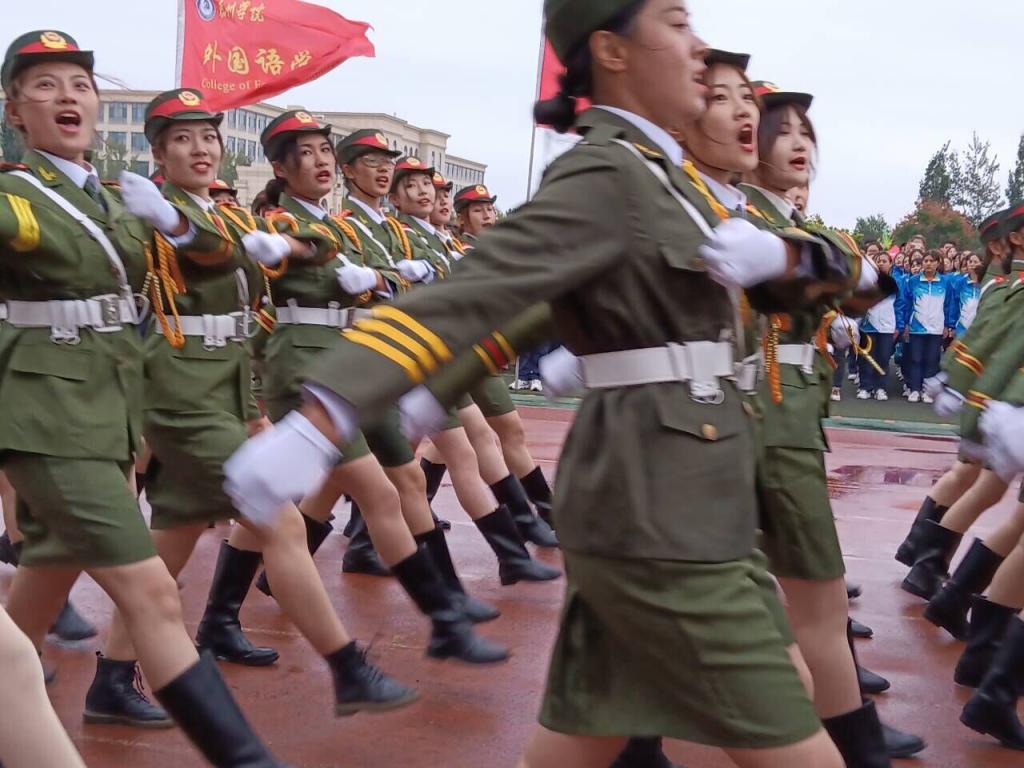 走正步,他们步履矫健;敬军礼,他们动作标准;喊口号,他们声音嘹亮。就连匕首操、旗语队、健身操也是豪情万丈,不失军人风采与气度。