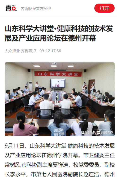 【大众报业·齐鲁壹点】山东科学大讲堂·健康科技的技术发展及产业应用论坛在德州开幕