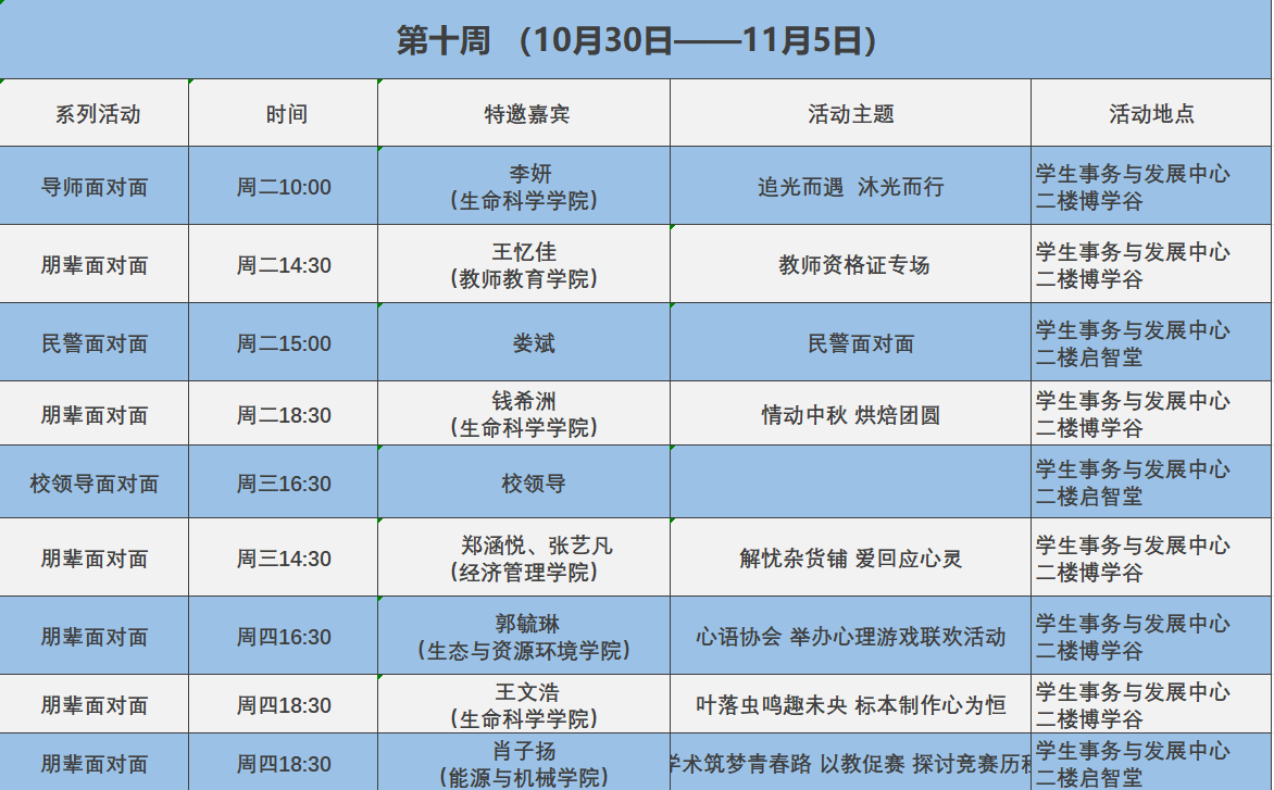 学生事务与发展中心第十周活动预告