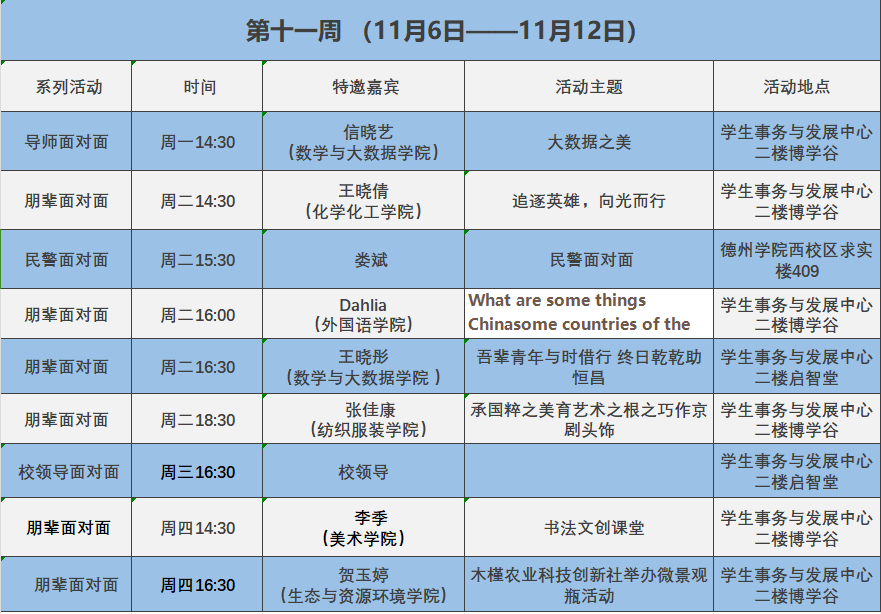 学生事务与发展中心第十一周活动预告