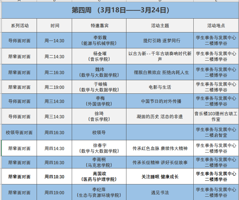 学生事务与发展中心第四周活动预告