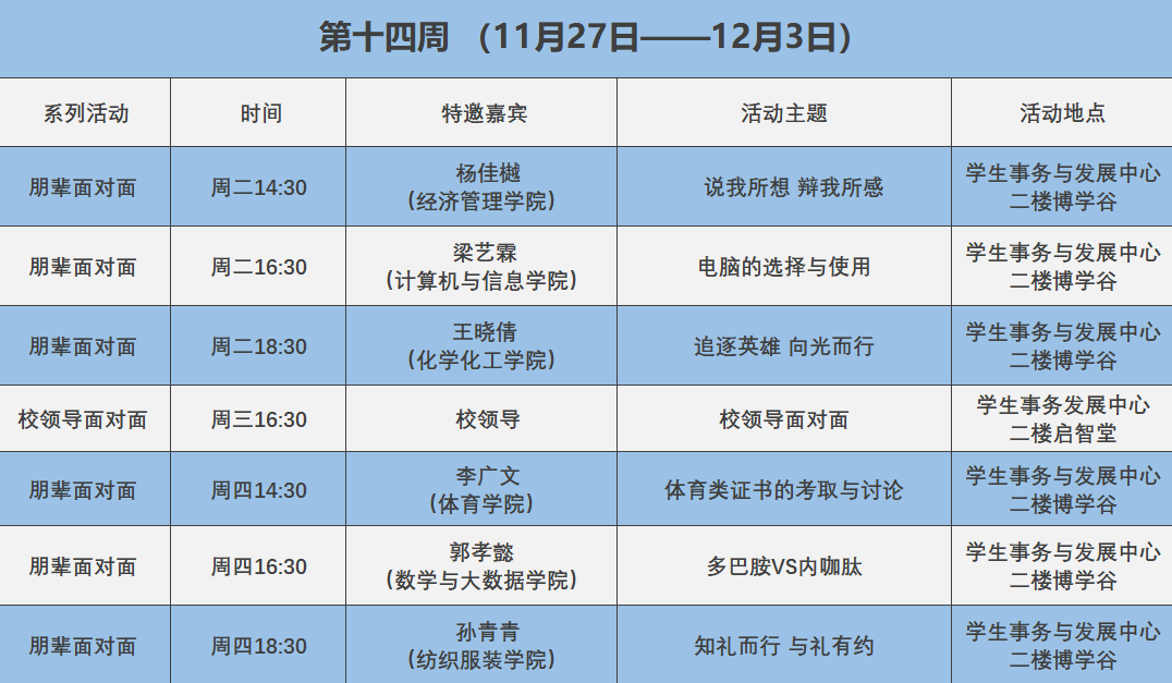 学生事务与发展中心第十四周活动预告
