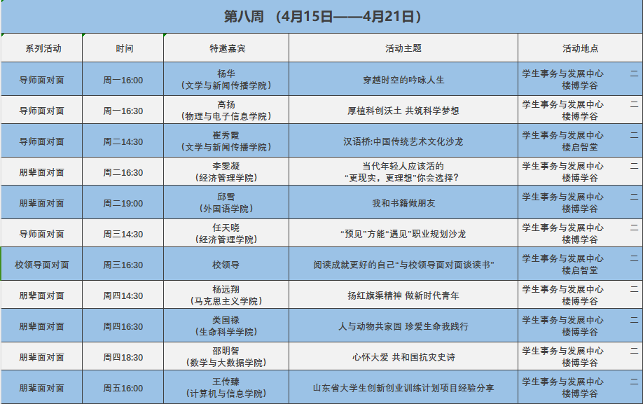 学生事务与发展中心第八周活动预告