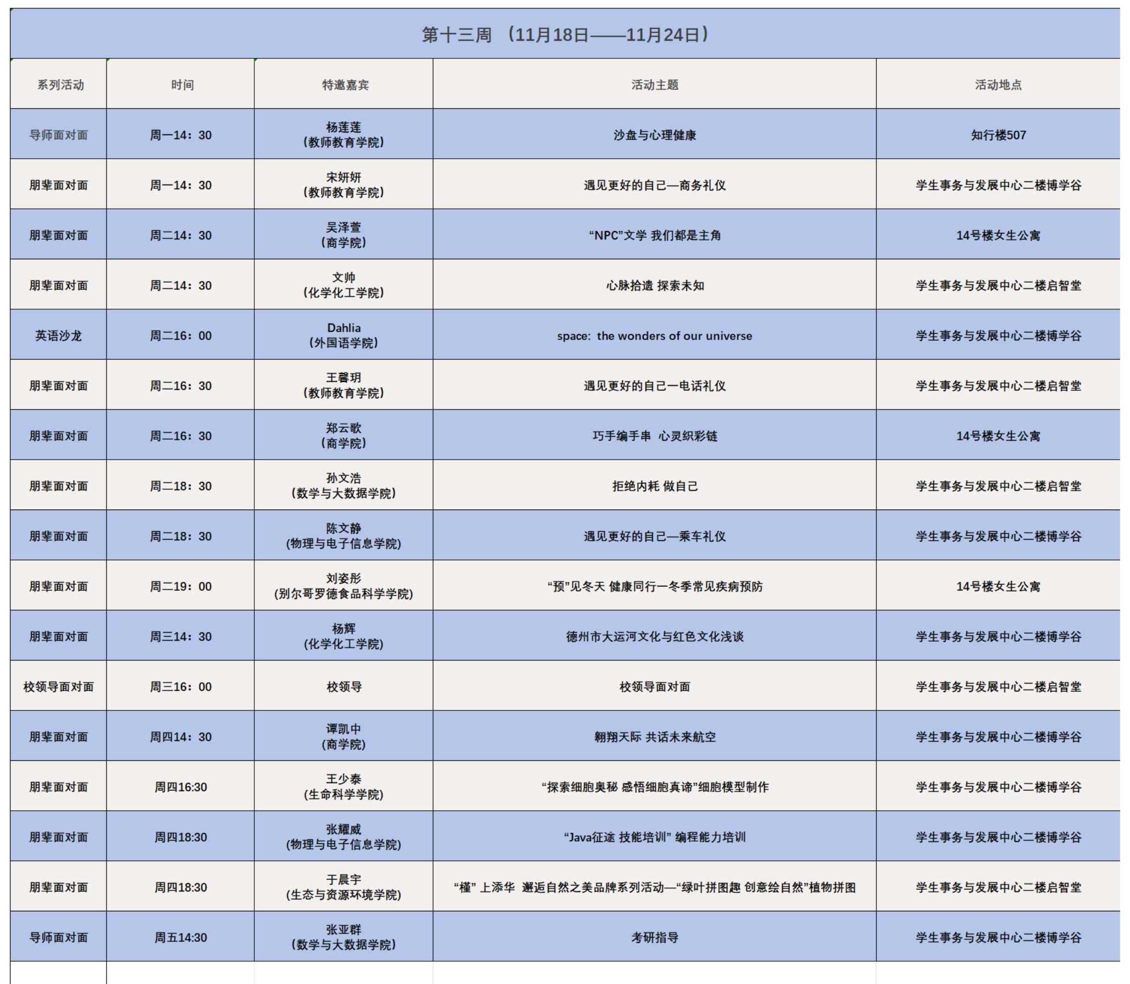 学生事务与发展中心第十三周活动预告