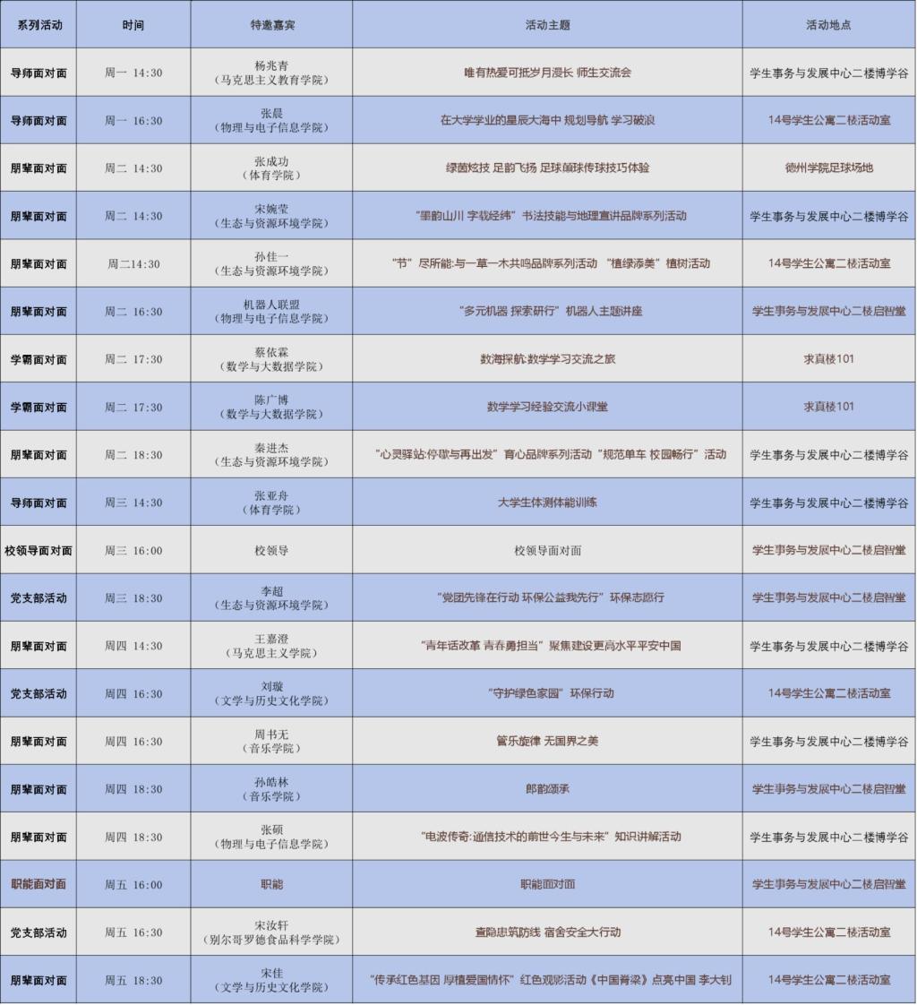 学生事务与发展中心第八周活动预告