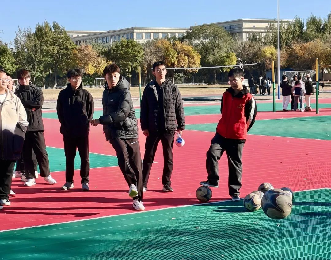 在活动现场,可以看到各种精彩纷呈的比赛项目正热火朝天地进行中。例如,“一二三木头人”不仅考验了学生们的反应速度,还增加了游戏的趣味性;“背球接力”则要求队员们保持良好的平衡能力同时还要紧密配合;而“足球射门大赛”更是让不少足球爱好者展现了自己的精湛技艺。此外,还有“混合乒乓球跳绳接力”、“两人三足”、“毛毛虫竞速接力”以及“30米搭桥”等项目,每一个都充满了挑战与乐趣。