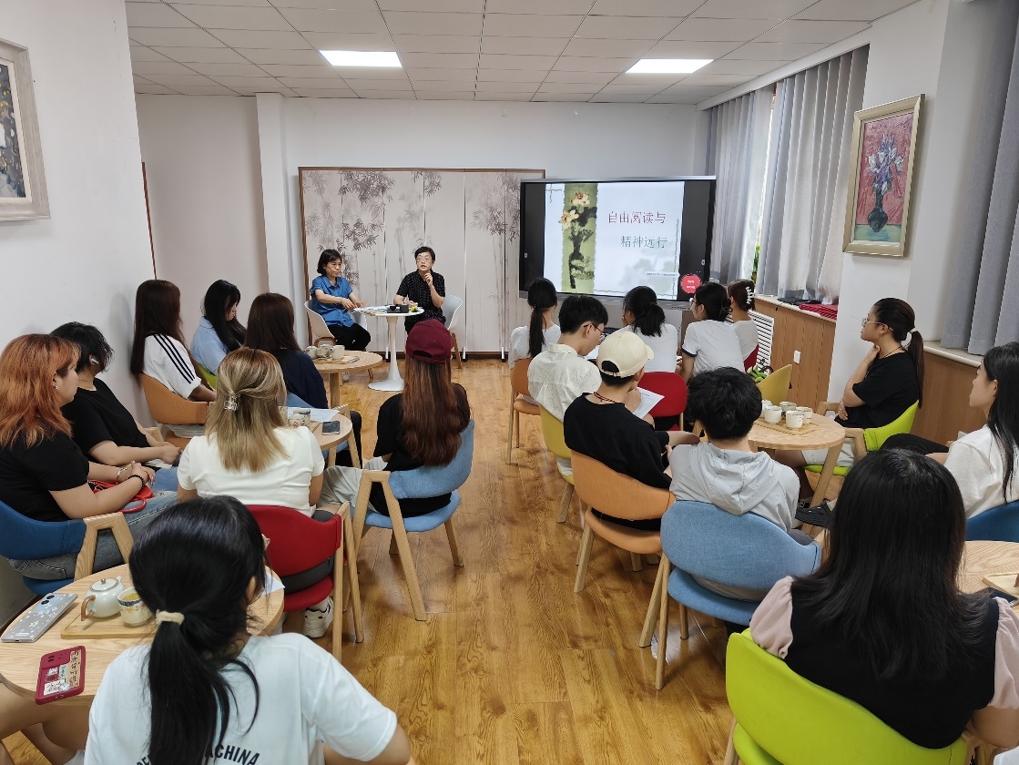 6月22日下午,第三期德州学院教授茶座在“一站式”学生社区学生事务与发展中心二楼博学谷开讲,主持人徐慧清介绍了读书的意义和活动主题,姜山秀就“自由阅读与精神远行”这一话题与同学们展开深入交流,来自19个学院的30名同学参加活动。